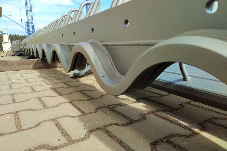 Na transport do Bydgoszczy czekają jeszcze łuki oraz najbardziej złożone elementy konstrukcji, jakimi są końcówki przęsła, przy których zamocowane zostaną łuki nośne. W tych elementach wykonawca zainstaluje też urządzenia dylatacyjne, które w środę z Niemiec przyjechały do zakładu produkcyjnego w Kielcach.