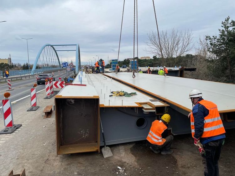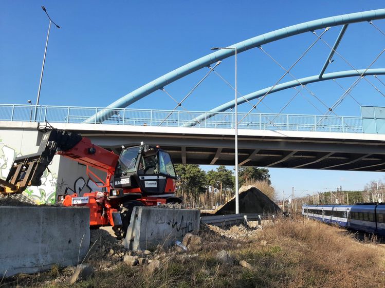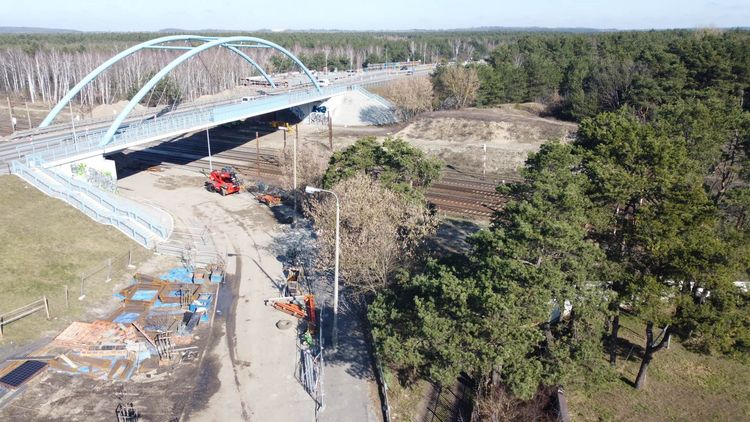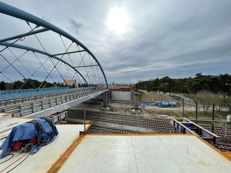 W ostatnich tygodniach przyjechały na plac budowy kolejne elementy pomostu, które są ze sobą scalane. Część obiektu została już nasunięta na tymczasowe podpory od strony północnej. Pozostał jeszcze odcinek nad samymi torami kolejowymi. Ta część prac jest jednak uzależniona od wyłączenia sieci trakcyjnej pod obiektem.