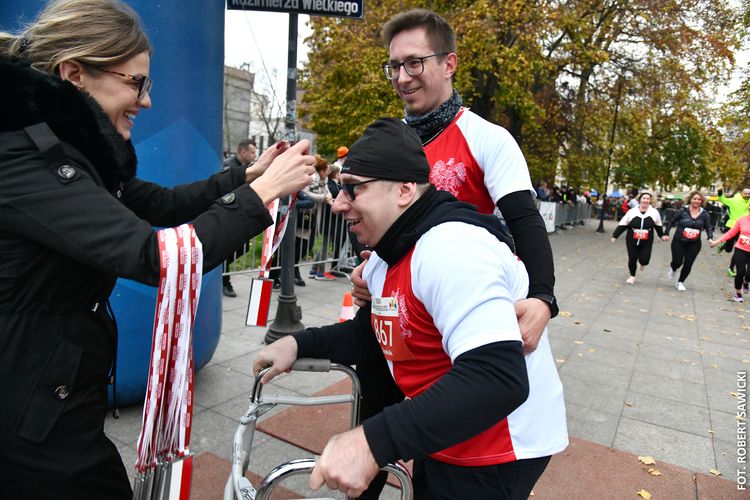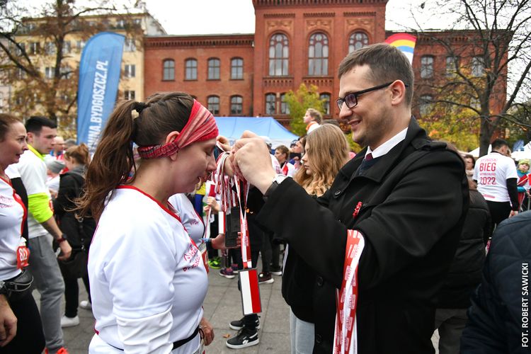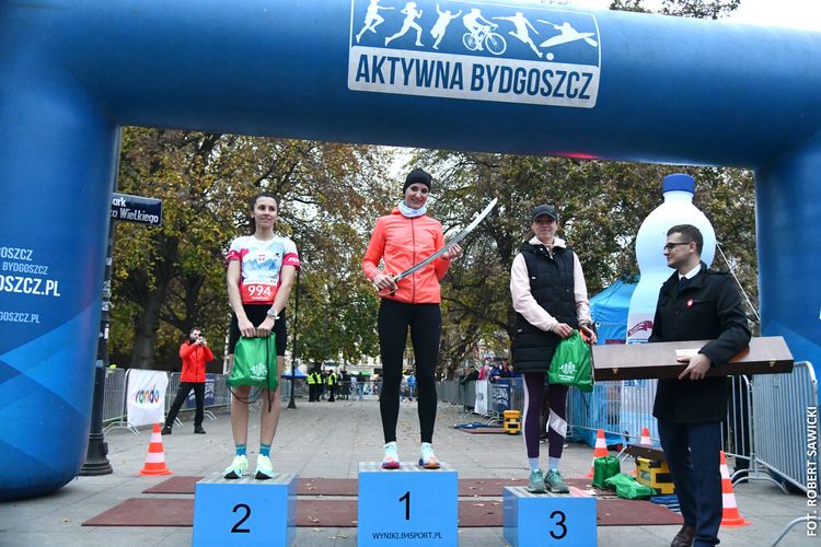 - To jest bieg w którym startują młodzi i starsi. Ta rywalizacja ludzi łączy, niezależnie od poglądów. Nie ma żadnych podziałów. Świętujemy odzyskanie przez Polskę niepodległości i to jest piękne - mówił na mecie zwycięzca w kategorii mężczyzn Paweł Ochal. Trasę 5 km przebiegł on w czasie 15:43.30. Na podium stanęli też dwaj inni bydgoszczanie: Jakub Tuleja (15:52.95) i Rafał Nalewalski (15:58.50). Wśród Pań najlepsza była inowrocławianka Anna Nowakowska (czas 17:48.35).