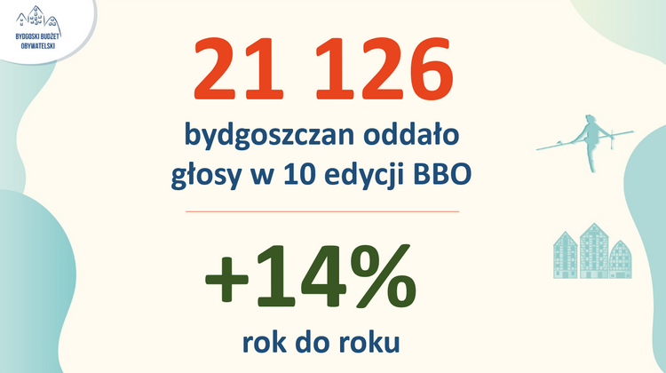 W tym roku na realizację zwycięskich projektów zabezpieczyliśmy blisko 16 mln zł, podobnie jak w poprzedniej edycji. Pomysły tradycyjnie zgłaszali mieszkańcy – łącznie głosowało 21126 osób, które oddały na nie ponad 71 tysięcy głosów, w tym ponad 20 tysięcy na projekty osiedlowe, 17,4 tys. na ponadosiedlowe, 17, 5 tys. na mikroprojekty osiedlowe i ponad 18 tys. na projekty społeczne. Szczegółowe wyniki głosowania znajdują się na stronie www.bdgbo.pl.