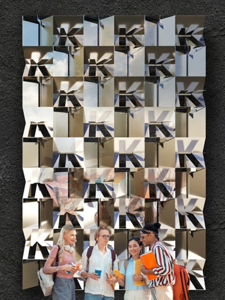 Instalacja artystyczna została zaprojektowana w systemie modułowym tworząc płaskorzeźbę o wymiarach 8 x 3 m w układzie pionowym. Jest efektem konkursu, w którym zwyciężyła Maria Jankowska z Bydgoszczy. Instalację utworzy układ liter „T” oraz „K”. Każda z nich wykonana jest w sposób niekompletny, częściowy, tworząc wraz ze swoim lustrzanym odbiciem całość znaku. Całość instalacji wykonana zostanie ze stali nierdzewnej wysoko polerowanej tworząc układ luster i załamań. Dzięki plastycznej trójwymiarowej formie, modernistyczny fronton budynku będzie chłonął otoczenie. W lustrach odbije się w ciekawy sposób między innymi jeden z symboli miasta - zabytkowe spichrza, Brda oraz wkrótce, pięknie zrewitalizowany Rybi Rynek. Projekt został także pozytywnie zaopiniowany przez miejskiego konserwatora zabytków oraz Radę ds. Estetyki Miasta. Za prace odpowiadać będzie Studio Reklamy Euromet z Lublina, z którą zawarta został umowa o wartości prawie 310 tysięcy złotych. Wytworzenie i montaż instalacji zajmą około 4 miesięcy.