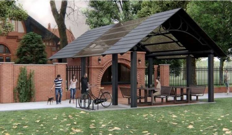 Przyjęta forma architektoniczna zadaszenia nawiązuje do form przestrzennych budynków Stacji Wodociągowej Las Gdański, a koliste elementy dekoracyjne ze stali – do motywów plastycznych na zabytkowych obiektach Stacji „Las Gdański”.