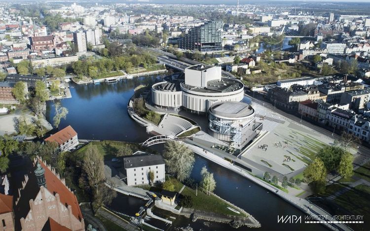 - powierzchnie dopełniające o funkcji gastronomicznej, technicznej i zaplecza, w tym także taras widokowy od strony rzeki z widokiem na katedrę i Wyspę Młyńską.