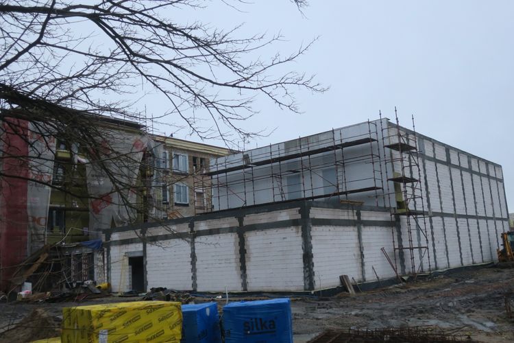 Wszystkie prace zlecone przez Uniwersytet Kazimierza Wielkiego są sukcesywnie realizowane. Od strony frontowej można już dostrzec część nowej elewacji, na której dominują jasne okładziny. Obecnie prace wykonywane są od strony boiska.
