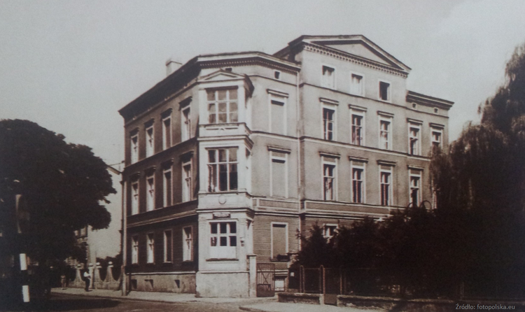 Budynek przy ulicy Gimnazjalnej 2 to zabytkowa kamienica. W pierwotnej formie wzniesiono ją w latach 70. XIX wieku. W kolejnych latach obiekt przebudowywano. W latach 1916-45 pełniła funkcję kliniki medycznej. Charakterystycznym elementem kamienicy jest wykusz w ściętym narożniku zwrócony na plac Wolności. Elewację frontową klasycyzującej kamienicy  zdobią między innymi gzymsy, naczółki i boniowanie na wysokości parteru. Elewację od strony południowej wieńczy płaski trójkątny szczyt.