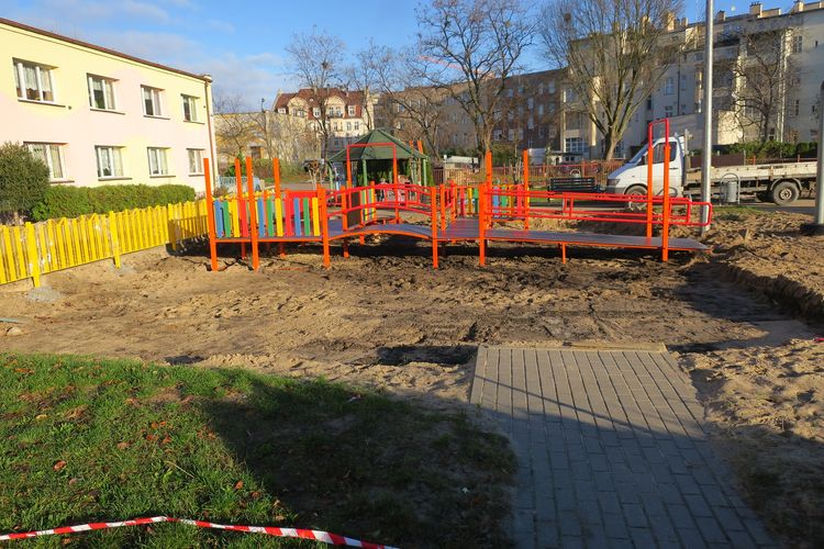 Na osiedlach powstają też nowe place zabaw dla dzieci. Na zdjęciach budowa marynistycznego placu zabaw nad Balatonem oraz placu zabaw dedykowanego dzieciom niepełnosprawnym na Okolu.