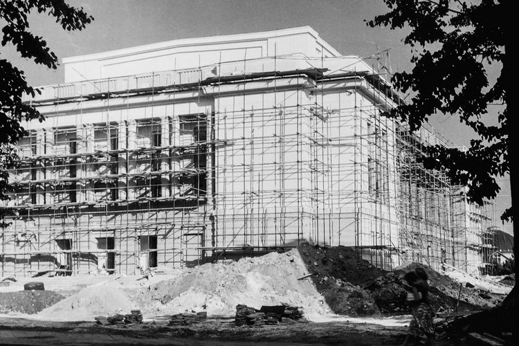 Dokładnie 1 stycznia 1953 roku zdecydowano o przekształceniu Pomorskiej Orkiestry Symfonicznej w Państwową Filharmonię Pomorską w Bydgoszczy. Już miesiąc później Andrzej Szwalbe rozpoczął starania o budowę nowej siedziby filharmonii. Wstępnych lokalizacji było kilka. Wśród nich wymieniano teren byłego cmentarza ewangelickiego przy ul. Jagiellońskiej, plac Kopernika, czy teren na którym obecnie znajduje się Zespół Szkół Muzycznych. Ostatecznie jednak zdecydowano. że gmach Filharmonii Pomorskiej stanie na terenie ogródków działkowych i dawnych kortów tenisowych u zbiegu ulic Libelta i Staszica. Prace budowlane rozpoczęły się w lutym 1954 roku. Co ciekawe oprócz ekip budowlanych w czynie społecznym na placu budowy pojawiali się m.in. bydgoscy kolejarze, czy harcerze.